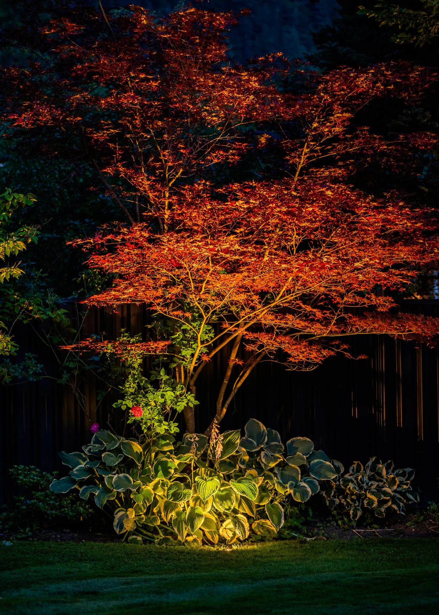 Waterfall & Japanese Maple Lighting – Westway, Squamish